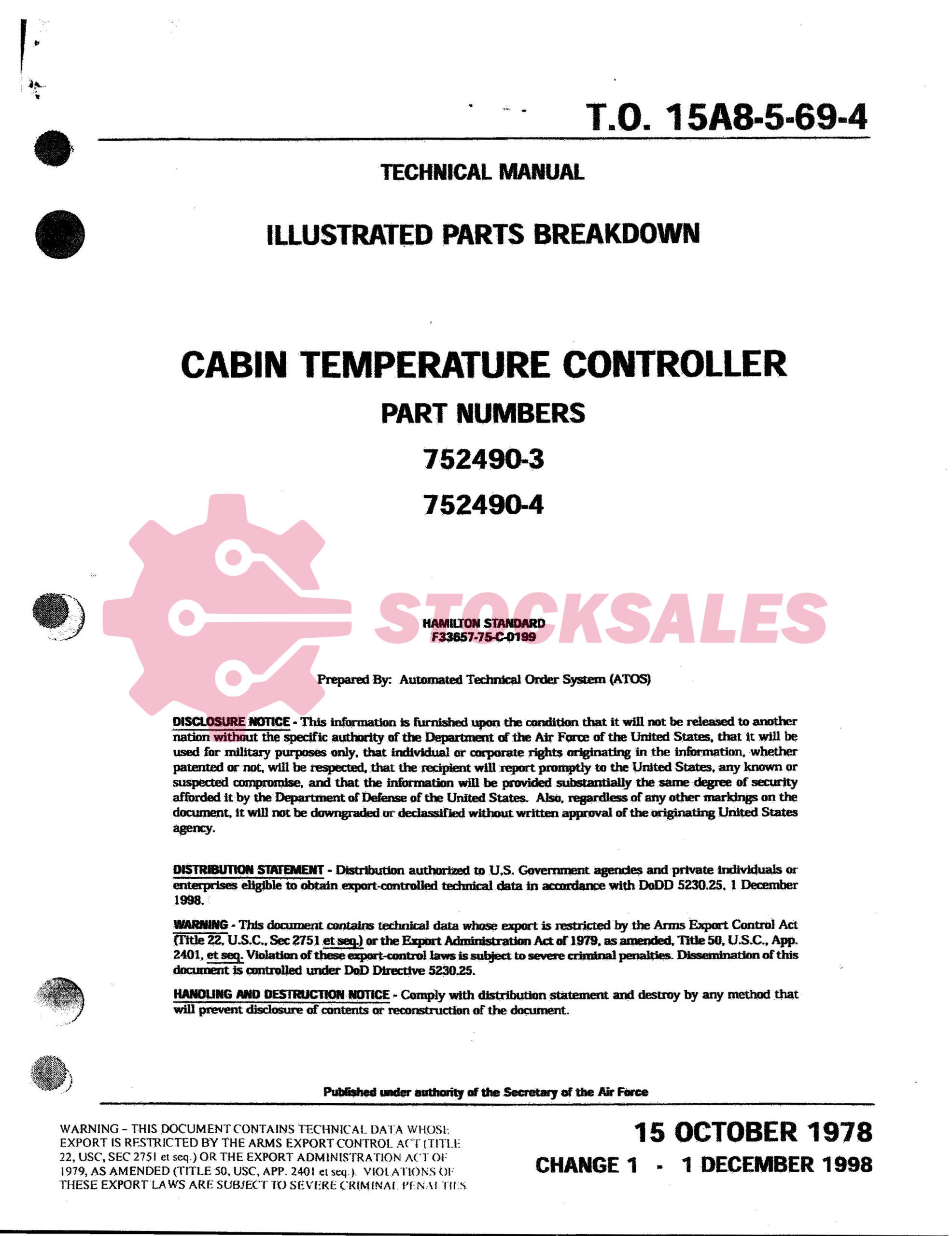 TO Number: 15A8-5-69-4 – CABIN TEMPERATURE CONTROLLER – ILLUSTRATED PARTS BREAKDOWN (IPB) for Part Numbers: 752490-3, 752490-4, 18-54925-9