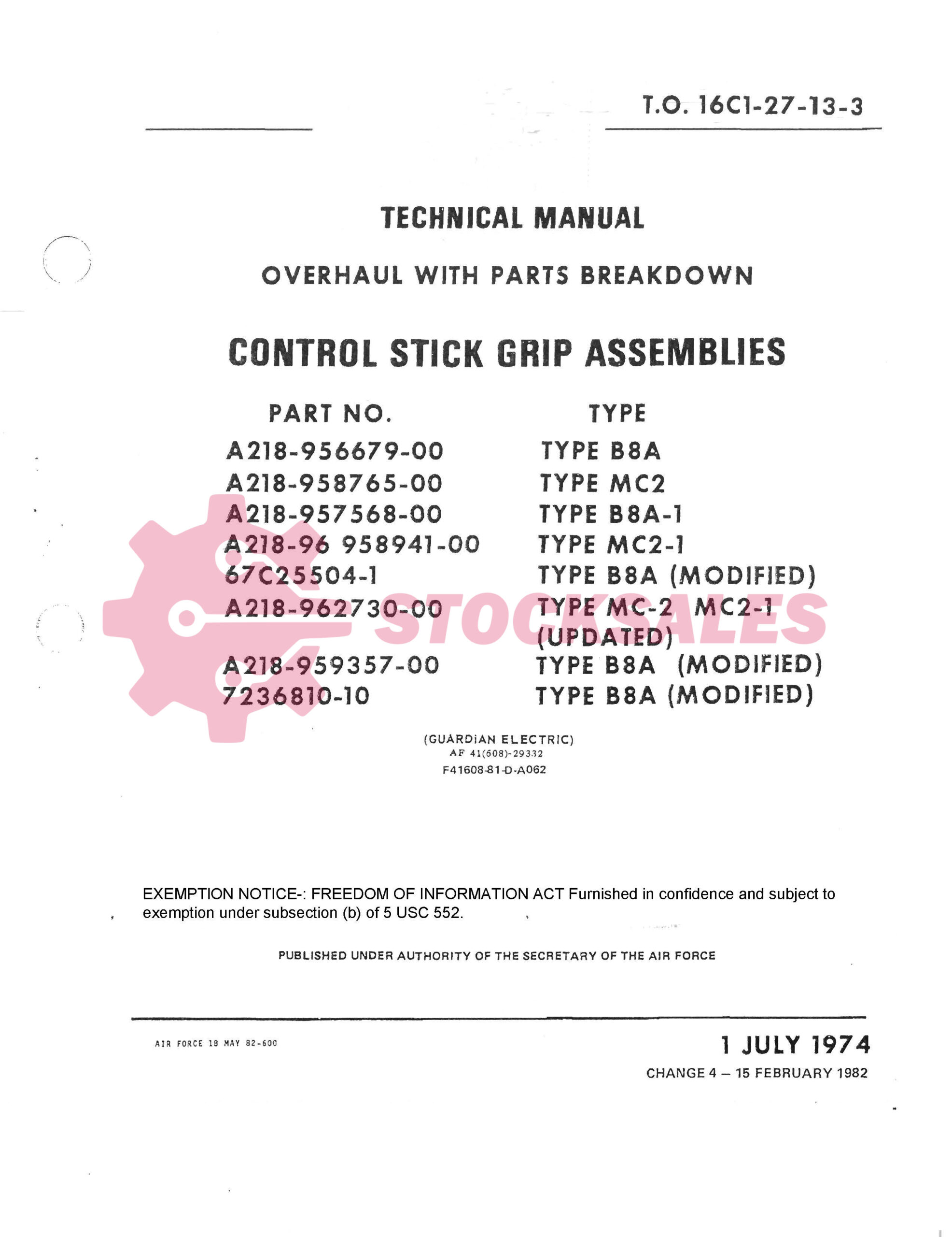 Description: CONTROL STICK GRIP ASSEMBLIES – OVERHAUL INSTRUCTIONS WITH ILLUSTRATED PARTS BREAKDOWN (IPB)