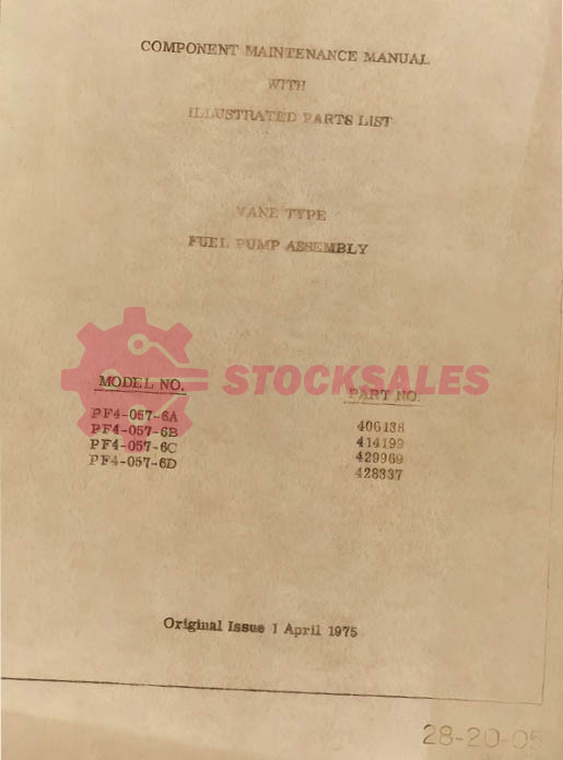 TO Number: 28-20-05 VANE TYPE, FUEL PUMP ASSEMBLY – MAINTENANCE MANUAL + ILLUSTRATED PARTS LIST for Part Numbers: 406138, 414199, 429969, 428337, PF4-057-6A, PF4-057-6B, PF4-057-6C, PF4-057-6D