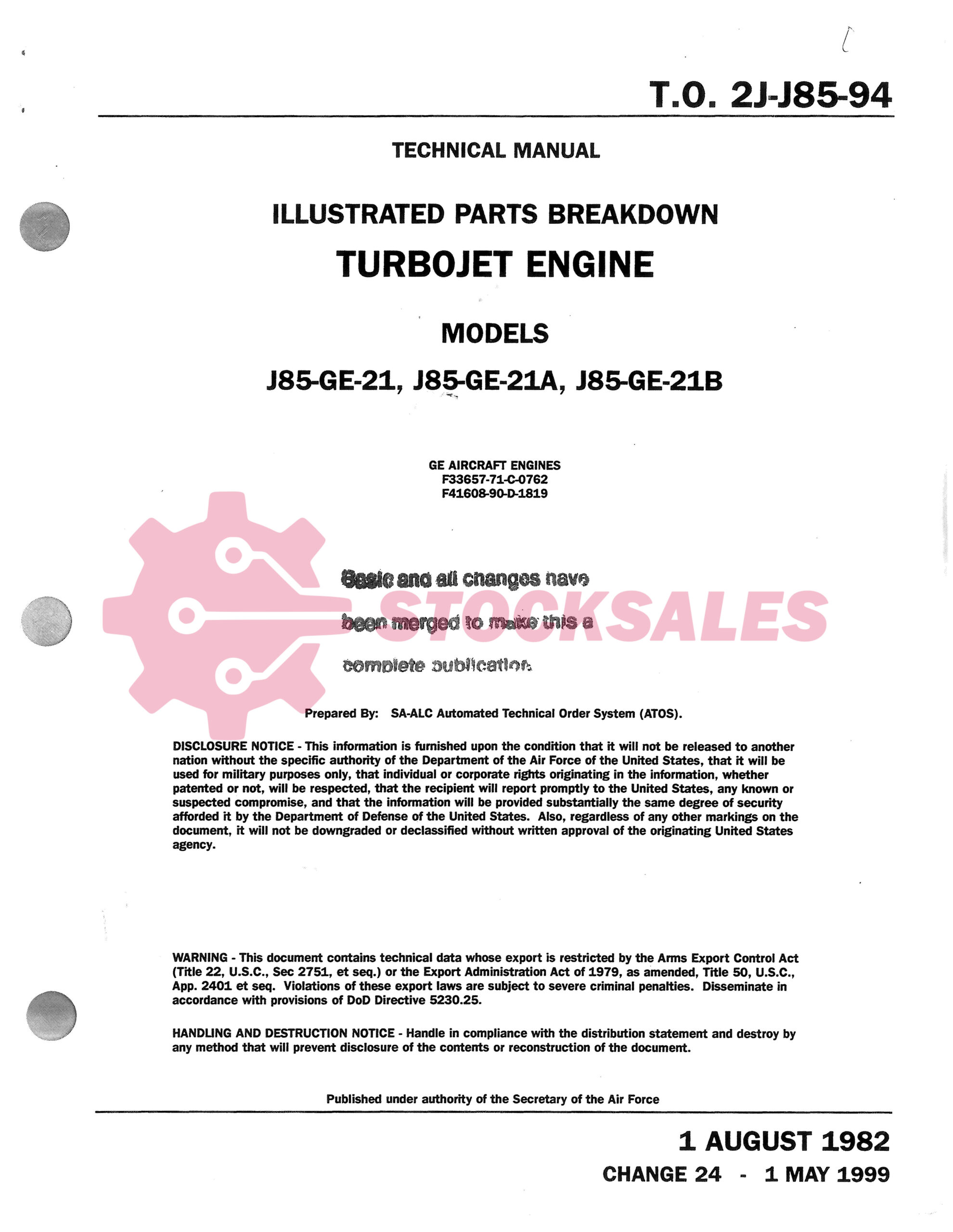 TO Number: 2J-J85-94 – TURBOJET ENGINE – ILLUSTRATED PARTS BREAKDOWN (IPB) for Part Numbers: J85-GE-21, J85-GE-21A, J85-GE-21B