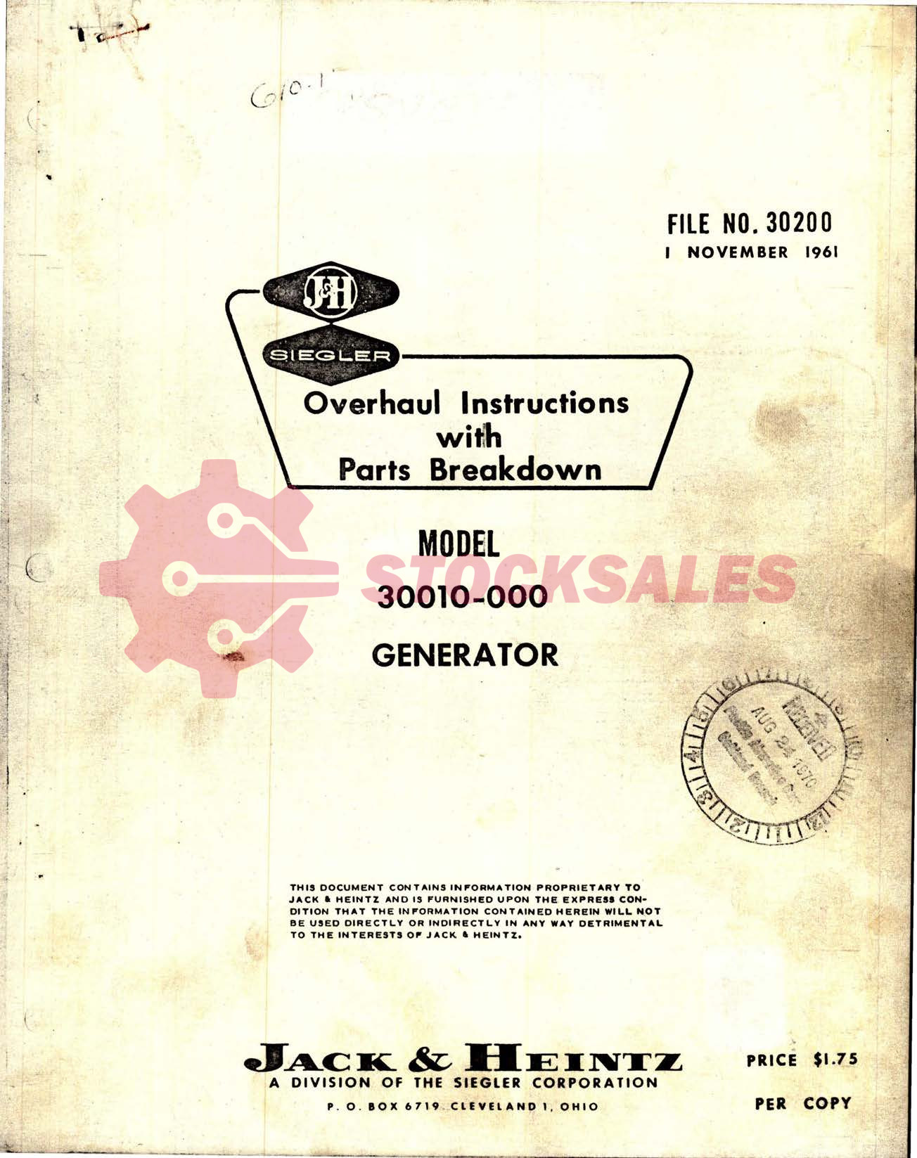 TO Number: 30200 – MODEL 30010-000 OVERHAUL INSTRUCTIONS WITH PARTS BREAKDOWN for Part Numbers: 30010-000, 58C6226, 905D956-2, GEU5A