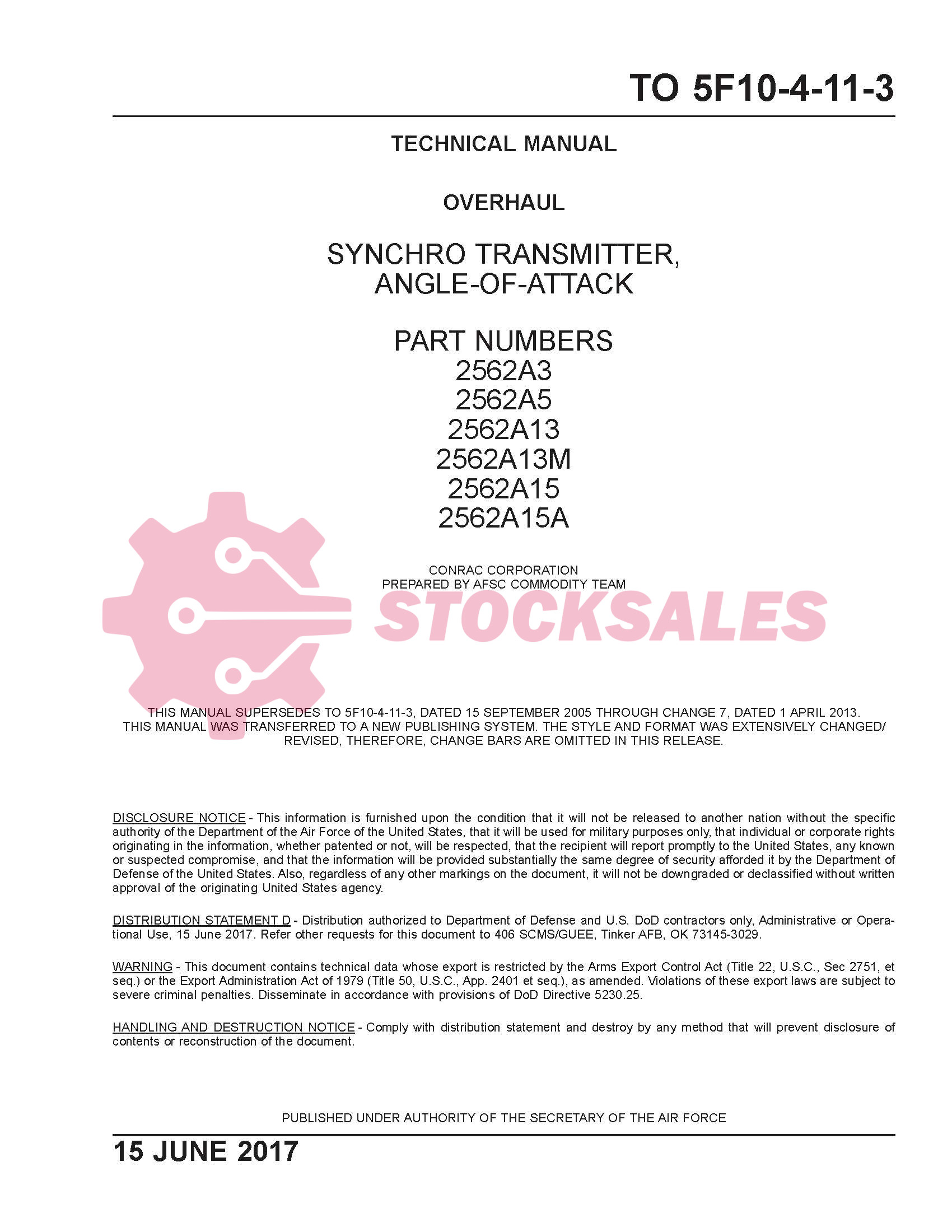 TO Number: TO 5F10-4-11-3 – SYNCHRO TRANSMITTER, ANGLE OF ATTACK – OVERHAUL INSTRUCTIONS for Part Numbers: 836525, 836525-3, 836525-5, 836525-7, 14-73900-3, 14-73900-5, 14-73900-7