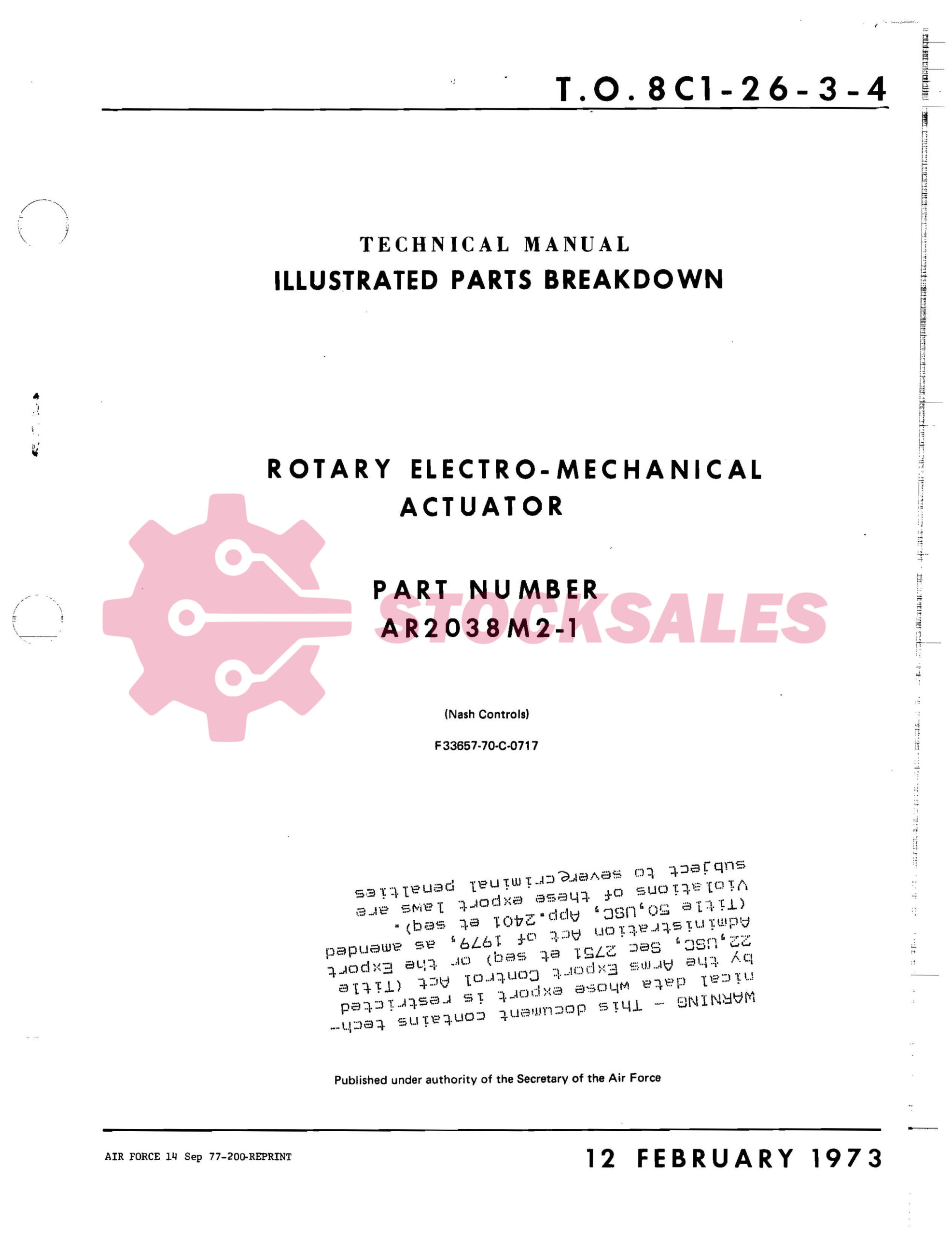 TO Number: TO 8C1-26-3-4 – ROTART ELECTRO-MECHANICAL ACTUATOR – ILLUSTRATED PARTS BREAKDOWN (IPB) for Part Numbers: AR2038M2-1, 3-54917-503