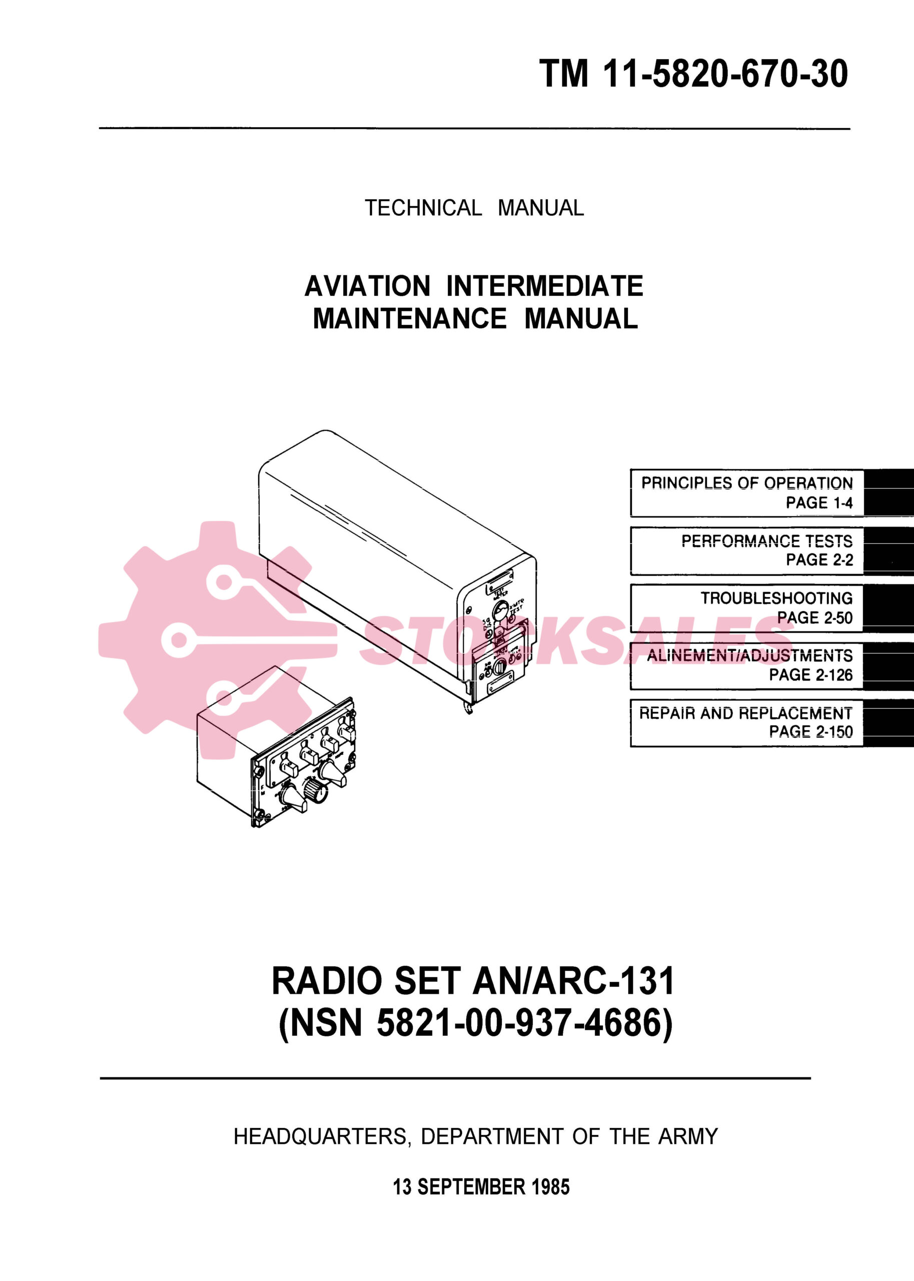 TO Number: TM-11-5820-670-30 – RADIO SET AN/ARC-131 – AVIATION INTERNEDIATE MAINTENANCE MANUAL for Part Numbers: AN/ARC-131